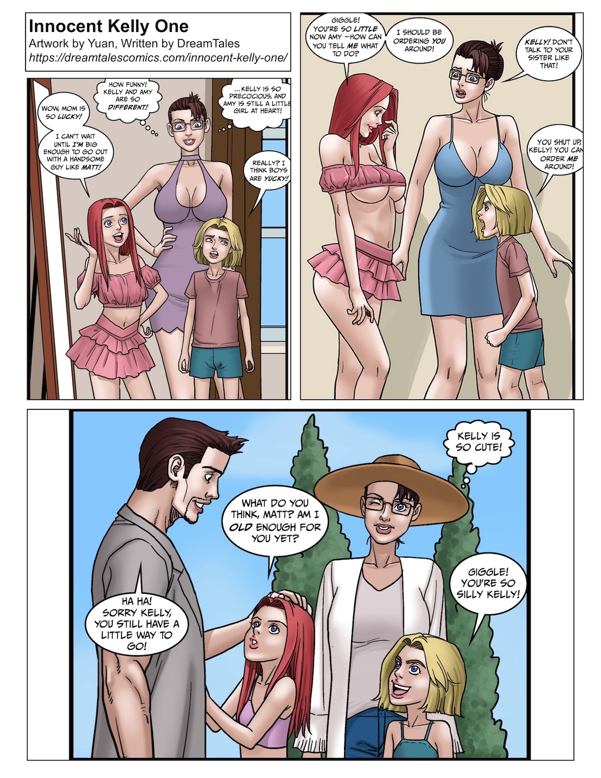 i like this new comic, please, I hope you consider the comic´s premise, kelly´s pheromones can make people grow too. maybe for the next part, her pheromones can affect her pal Hannah and her little brother making them join the grown up´s fun
