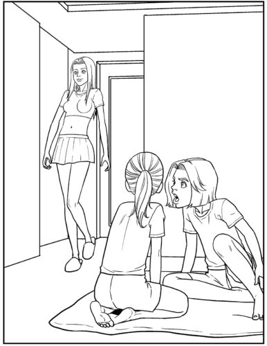 Interesting. Tables being turned on Kelly now as she shrinks and reverses in age while Amy and her friend grow and grow into towering, buxom college-age Amazons? Maybe Amy or her friend shock Kelly by not bullying her-but instead, proving they’re the “bigger” girls by forgiving Kelly and acting their physical ages? And Kelly is so ashamed of herself after that she goes into a corner and cries-where Amy finds her and the 2 sisters finally make up?